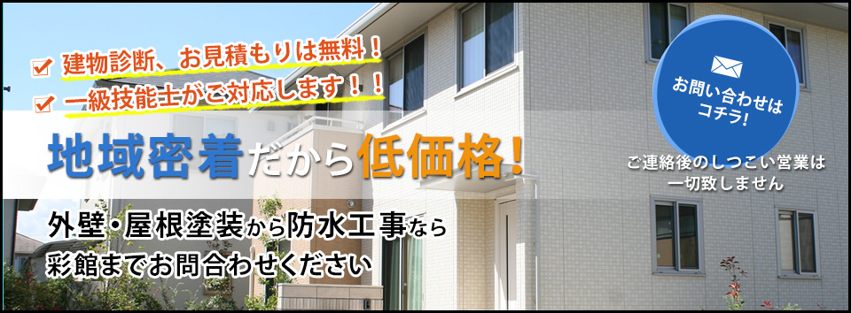 ㈲彩館は、東村山市を拠点に一般戸建ての外壁塗装や屋根塗装、ウレタン防水を中心に行っております。